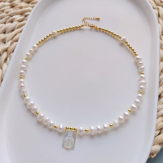 Elegant Portrait Faith Freshwater Pearl Shell Copper 18k Gold Plated