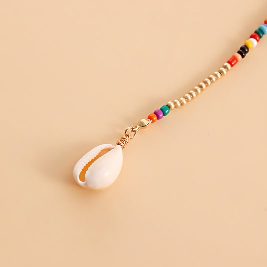 Bohemian Geometric Plastic Resin Shell Beaded Necklace